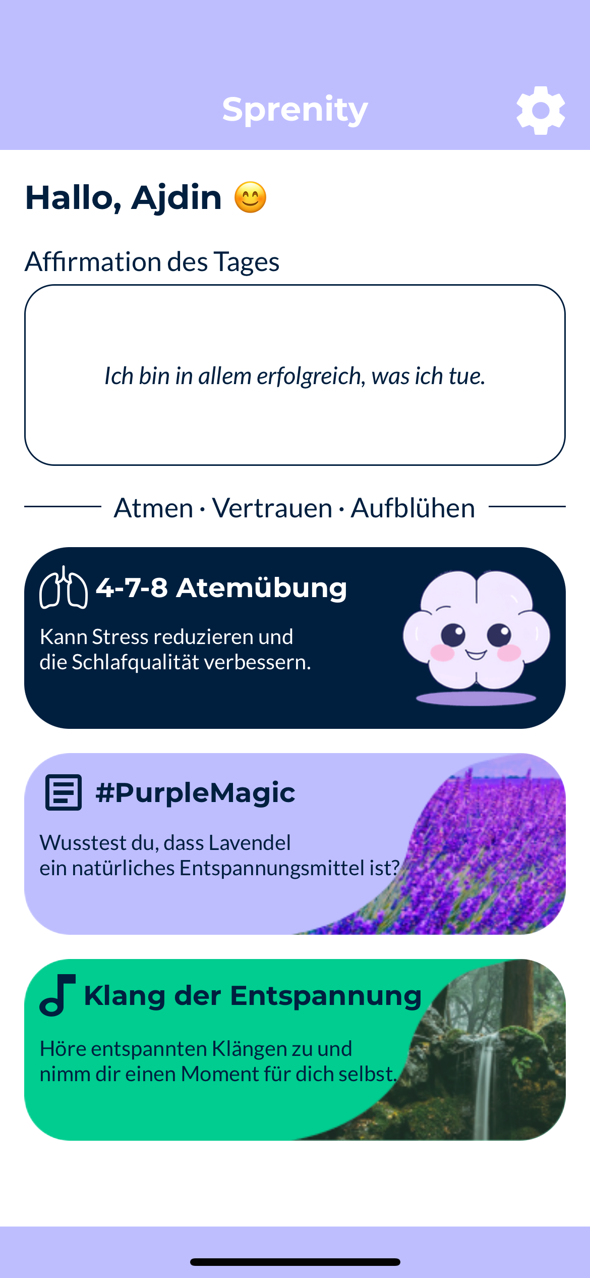 Entdecke die Gelassenheit: Sprenity jetzt kostenlos herunterladen. Einfach starten, tief durchatmen, zur Ruhe kommen.